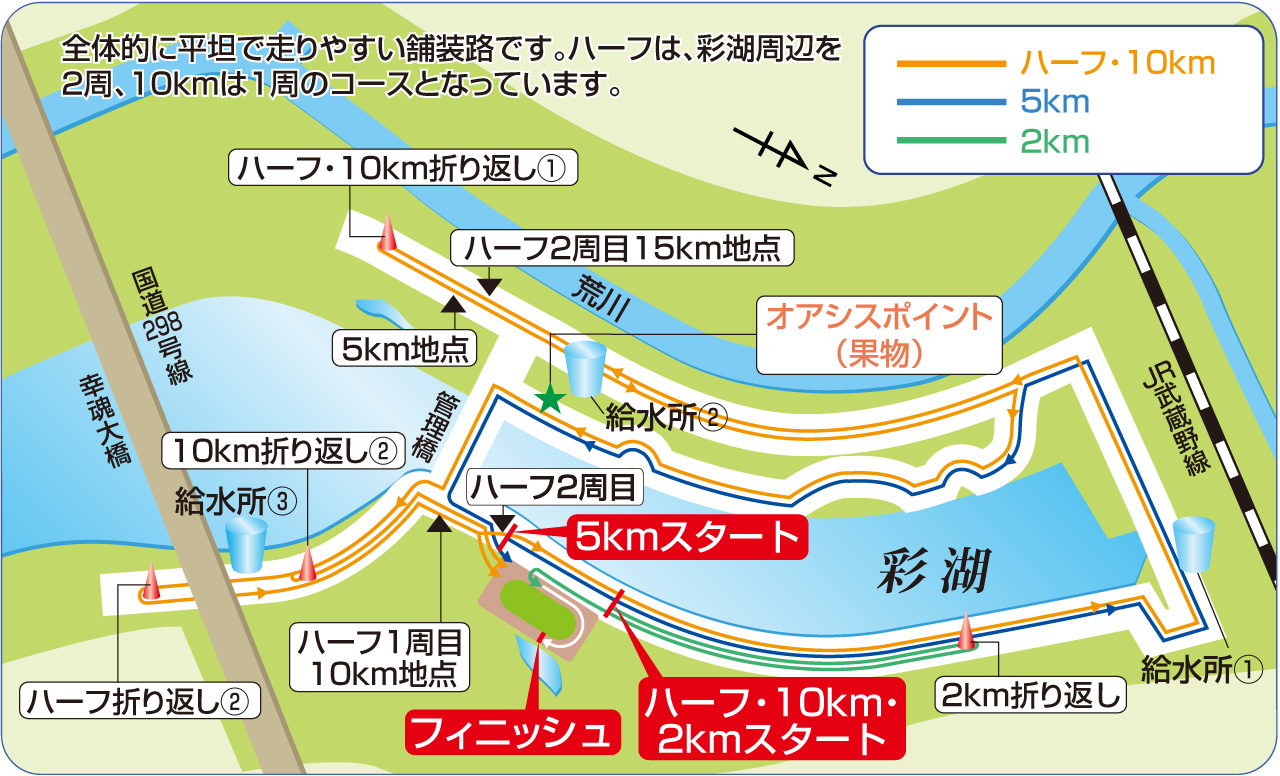 | ハーフマラソン: | 3ヶ所(2周6回) |
